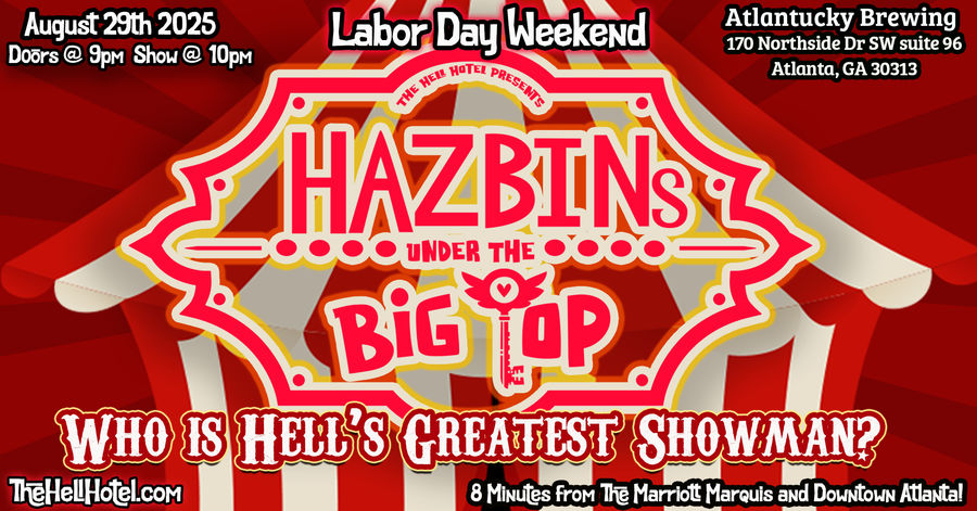 On Friday August 28th @ 10pm we invite you to return to The Hell Hotel for the debut of Hell's Greatest Showman, Hazbins Under The Big Top!