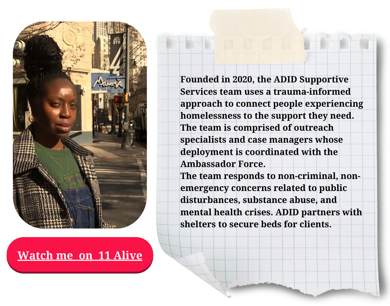 Settling into my career as the Director of Supportive Services for Atlanta Downtown Improvement District's street outreach team, there have been many twists and turns, ups and downs, but I have landed where my heart is content, and I am grateful for the choices I made to get here. I am honored to dedicate my time to finding solutions that impact change for my community, especially those experiencing homelessness in this great city of Atlanta.