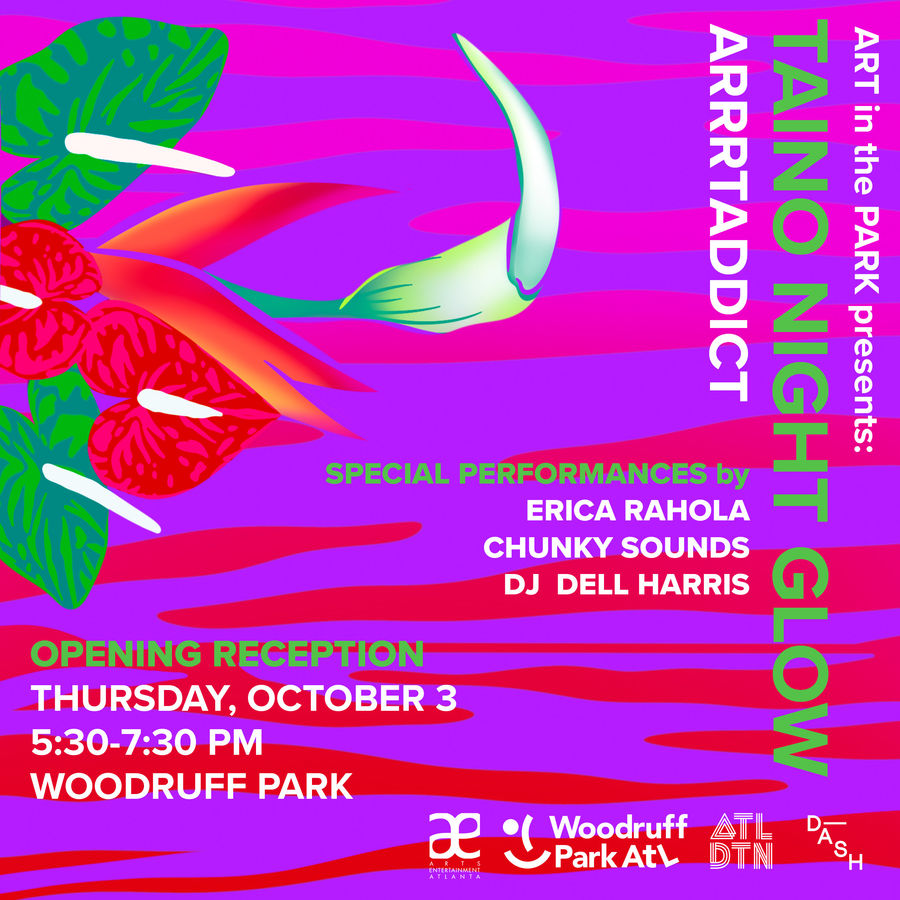 Join us for an evening of vibrant art and music inspired by the beauty of Puerto Rico’s El Yunque rainforest. ARRRTADDICT’s glowing art installation provides an immersive experience for viewers that invites them to meander into the colorful, luminous wooden forest she’s created to honor Caribbean Indigenous culture. You won’t want to miss the special live dance performances accompanied by music from Chunky Sounds and DJ Dell Harris. The opening party is in Woodruff Park on Thursday, October 3rd from 5:30-7:30 PM.